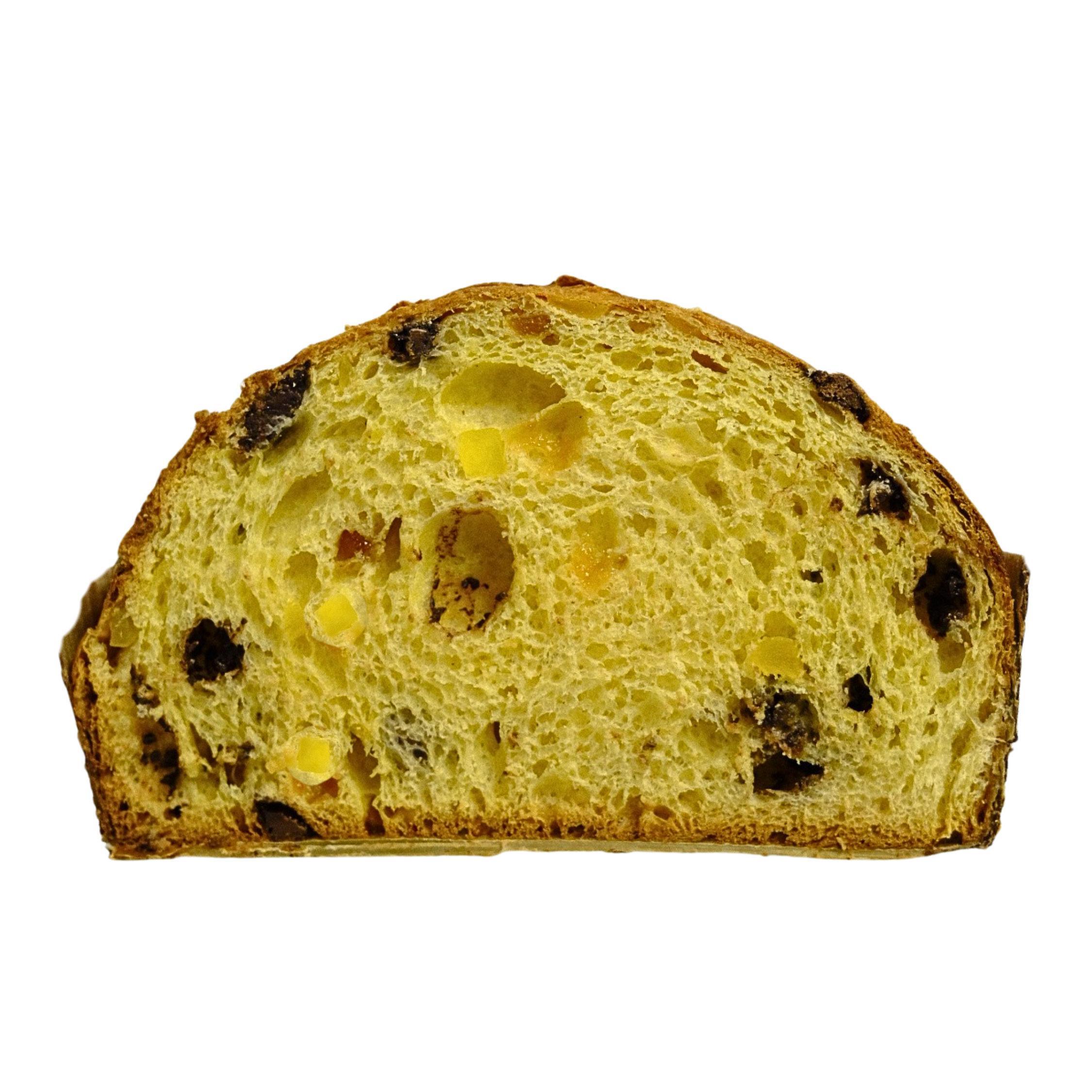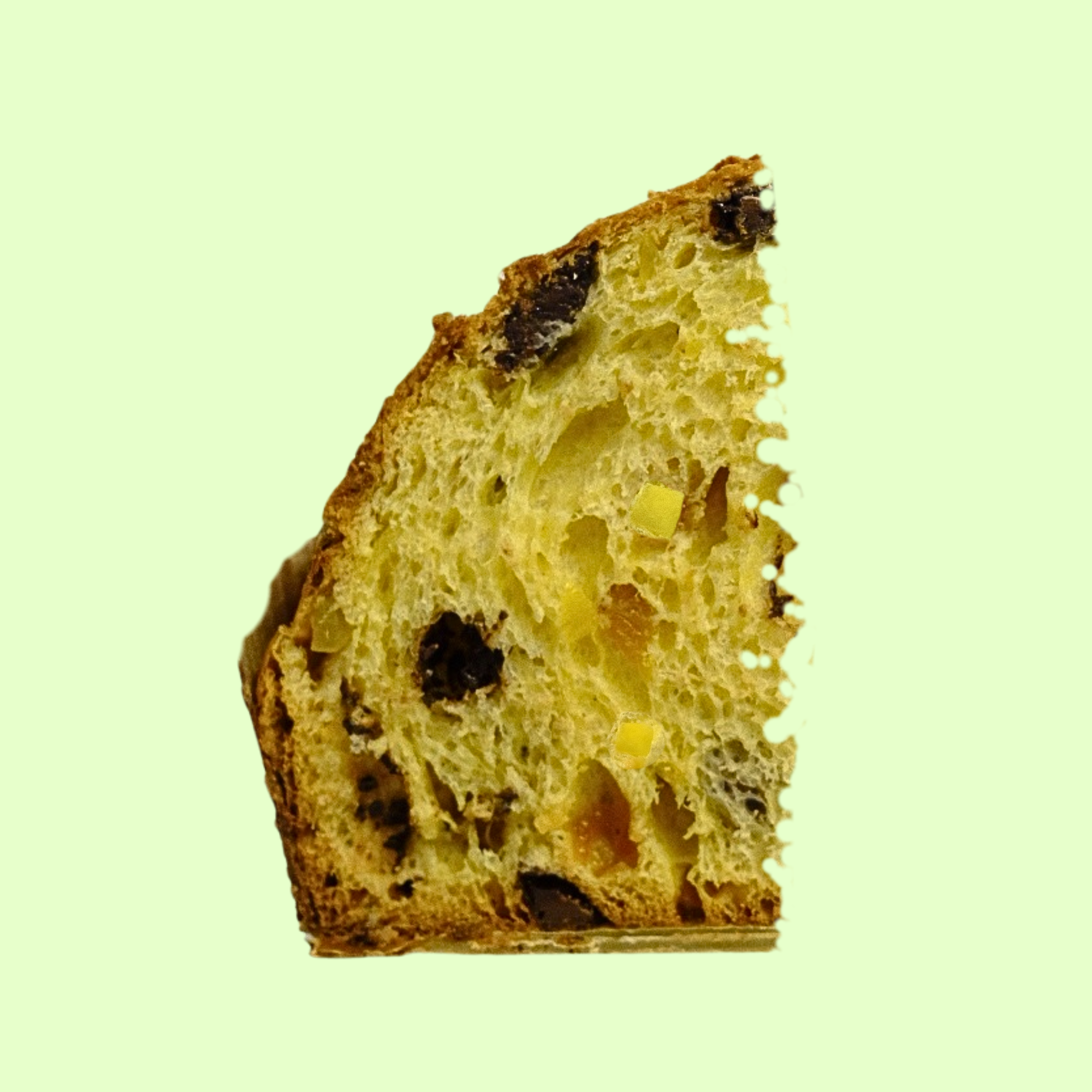 Farina di Frumento, Acqua, Burro, Zucchero, Cioccolato Fondente (zucchero, pasta di cacao, burro di cacao, emulsionante: lecitina di soia, aroma naturale di vaniglia) (9%), Pera Semicandita (Pere, sciroppo di glucosio-fruttosio, saccarosio) (9%), Tuorlo d'Uovo, Latte Scremato, Lievito Naturale (farina di Frumento, acqua), Aromi Naturali, Emulsionanti: mono e digliceridi degli acidi grassi, Sale.